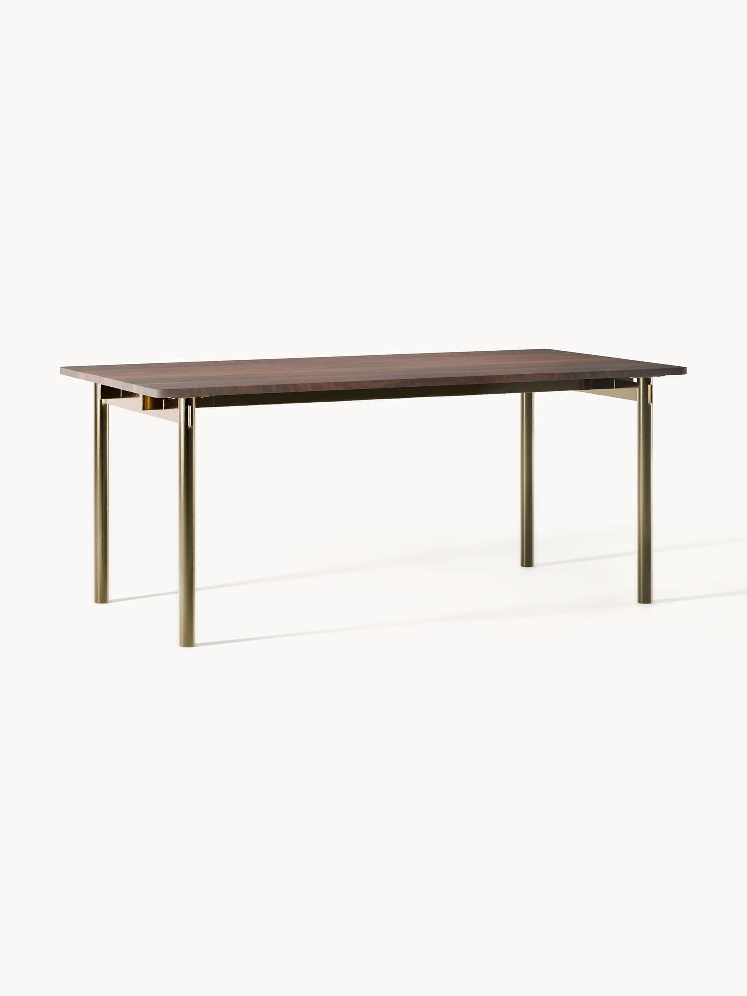Stół do jadalni Mavi 180x90 cm drewno akacjowe olejowane nogi złote
